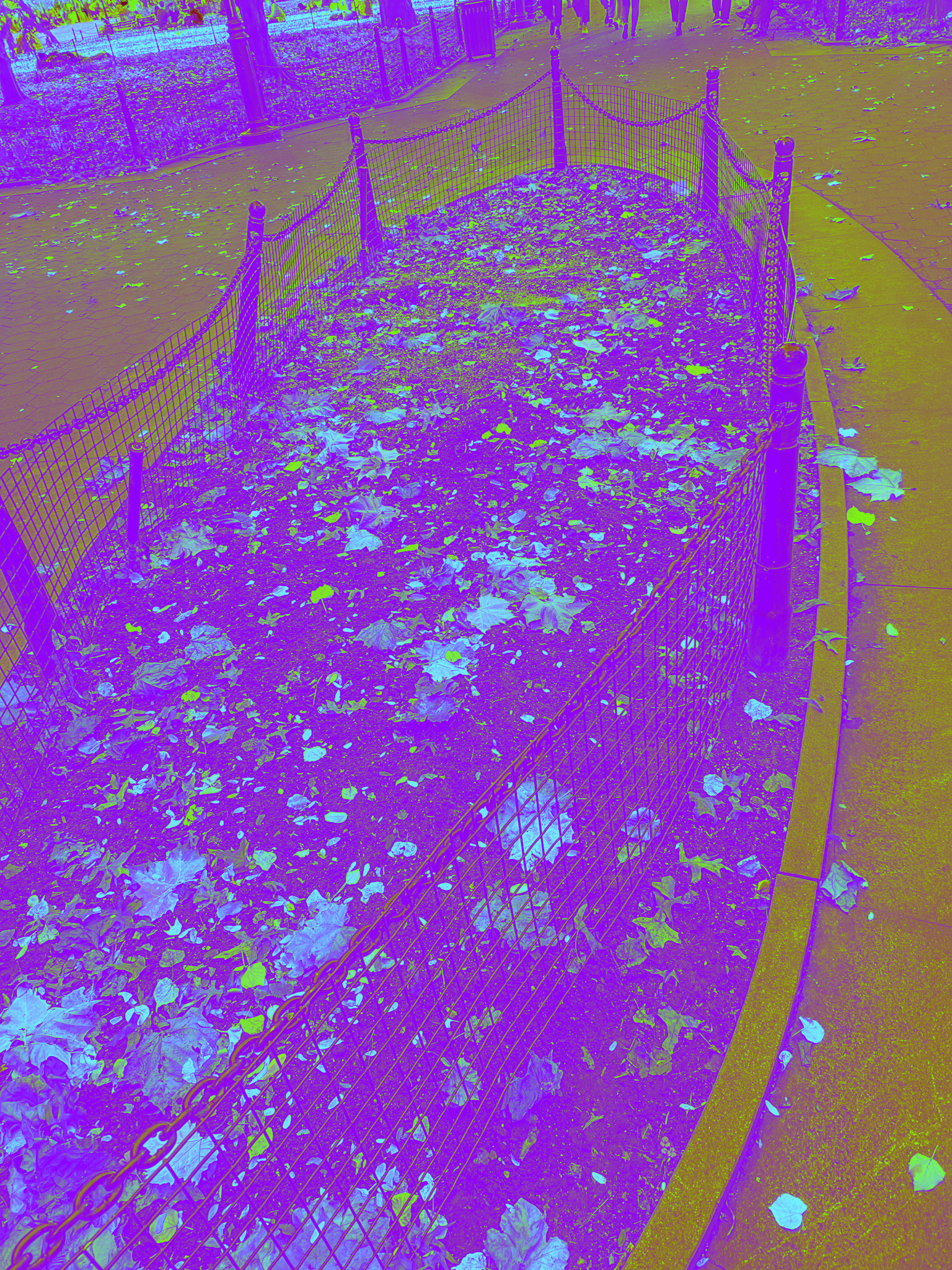 Passing by the area every day, I took a photo from different times of every day, across one week and then proceeded to print, scan, and render the images on Adobe Photoshop to isolate the colors and distinguish the natural dispersion of the ecosystem.